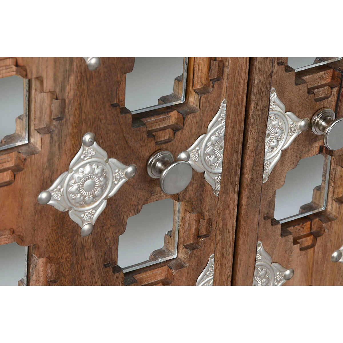 Aparador Home ESPRIT Marrón Negro Plateado Natural Madera de mango Espejo 150 x 38 x 80 cm