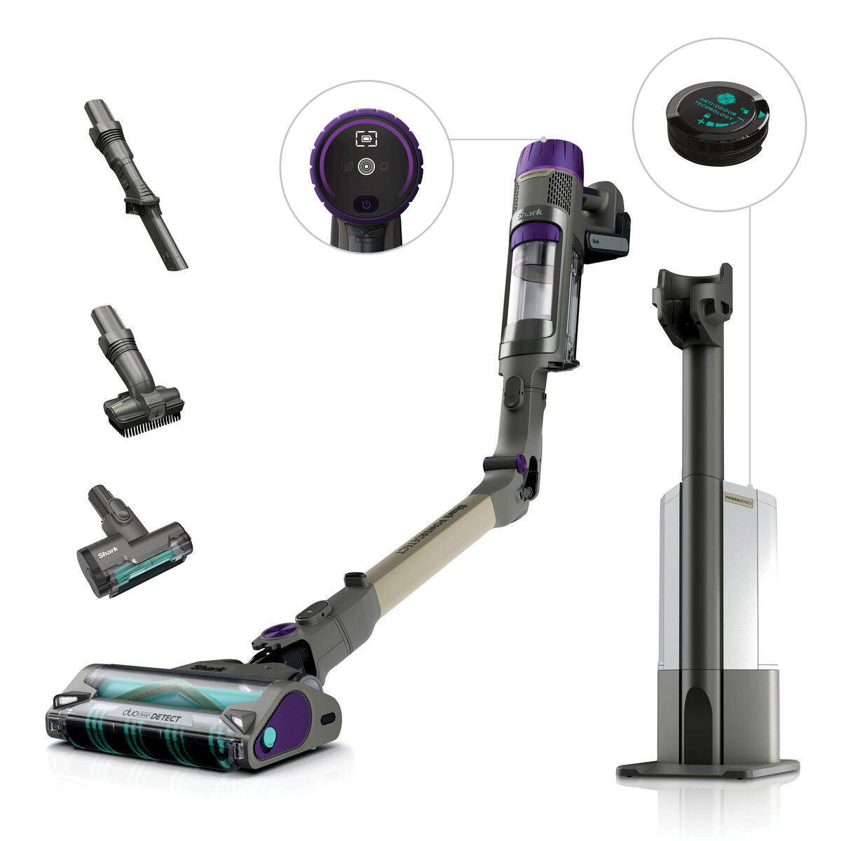 - Tecnologías Shark (cuidado del suelo): Anti Hair Wrap Technology, Anti-Allergen Complete Seal, Anti-Odour Technology, Boquilla estrecha, DuoClean Floorhead, Flexology, LED Headlights, Pet Hair Remover Tool