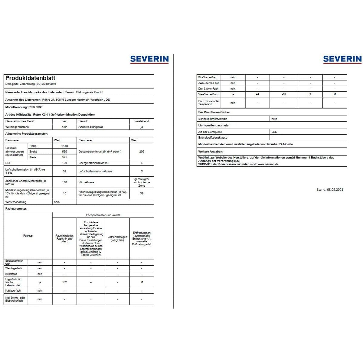 Frigorífico combinado Severin RKG8930 144 Rojo 206 L