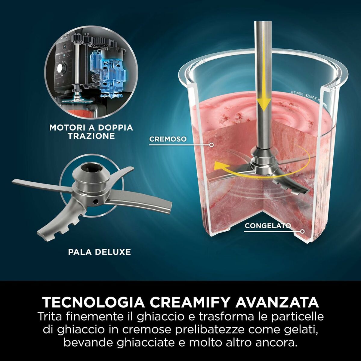 La heladera NINJA NC502EU Creami DLUX es un aparato diseñado para preparar y conservar helados con gran facilidad y eficiencia. Fabricada con material plástico resistente en un elegante acabado plata, esta heladera ofrece una potencia de 800 W que asegura un rendimiento óptimo durante su uso. Su capacidad de 2 litros permite elaborar una cantidad considerable de helado en cada sesión, ideal para familias o reuniones. Gracias a su funcionamiento automático, resulta sencilla de operar y elimina la necesidad de supervisar constantemente el proceso, facilitando la preparación de una amplia variedad de helados caseros, sorbetes y cremas. El diseño compacto y práctico de esta heladera contribuye a un uso cómodo y eficiente, ocupando el mínimo espacio en la cocina. Como producto de la reconocida marca NINJA, combina fiabilidad con tecnología adecuada para usuarios que buscan un equilibrio entre calidad y funcionalidad en electrodomésticos para la elaboración de postres congelados. En conjunto, este modelo representa una solución completa y accesible para quienes desean disfrutar de helados artesanales en casa con el mínimo esfuerzo y resultados consistentes.