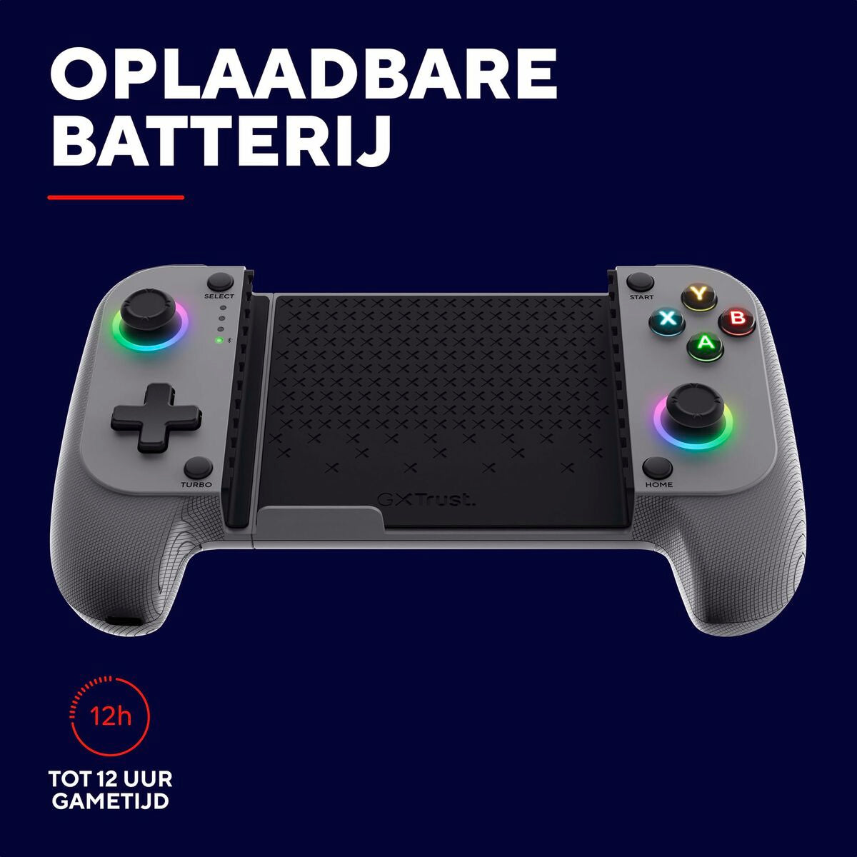 Trust GXT 735G Mylox. Tipo de dispositivo: Gamepad, Plataformas de juego soportadas: Android, iOS, Botones de función control para gaming: Botón de inicio, Botón de encendido, Botón Seleccionar, Botón turbo. Tecnología de conectividad: Inalámbrico, Interfaz del dispositivo: Bluetooth, Conector USB: USB Tipo C. Color del producto: Gris, Longitud de cable: 1 m. Fuente de energía: Batería, Tipo de batería: Integrado, Tecnología de batería: Ión de litio. Sistemas operativos móviles soportados: Android, iOS